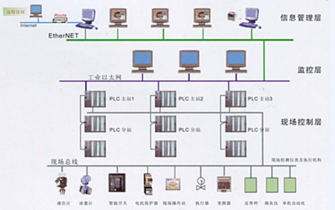 按照工廠(chǎng)生產(chǎn)要求,垃圾處理廠(chǎng)的整個(gè)PLC控制系統將被分為上位監控站、PLC控制柜、MCC柜(電機控制中心)、現場(chǎng)控制柜/箱三部分組成。監控站主要起到人機配置監控作用,在監視屏幕上顯示的生產(chǎn)工藝流程圖,啟動(dòng)和停止控制裝置,選擇自動(dòng)/手動(dòng)操作狀態(tài),PLC自動(dòng)控制啟動(dòng)和停止,或直接對現場(chǎng)設備手動(dòng)操作的控制命令,并保存運行過(guò)程中產(chǎn)生的數據生成運營(yíng)數據趨勢曲線(xiàn),顯示警報信號。監測站配備一個(gè)UPS電源,確保系統在緊急斷電時(shí)能夠有足夠的停電運行能力。PLC控制柜的作用是現場(chǎng)的開(kāi)關(guān)和模擬信號的采集和控制,其中CPU、電源和相應的I/O模塊均由PLC控制器控制,它可以很容易地擴展操作和系統維護, MCC柜主要用來(lái)放置空氣開(kāi)關(guān),交流接觸器和其他低壓電器,F場(chǎng)控制柜以及PLC通過(guò)MCC控制現場(chǎng)設備,F場(chǎng)控制柜/箱可現場(chǎng)手動(dòng)操作,可直接驅動(dòng)MCC柜,一般狀況下不使用,在裝配和調試或PLC出了問(wèn)題時(shí),可以做應急之用。